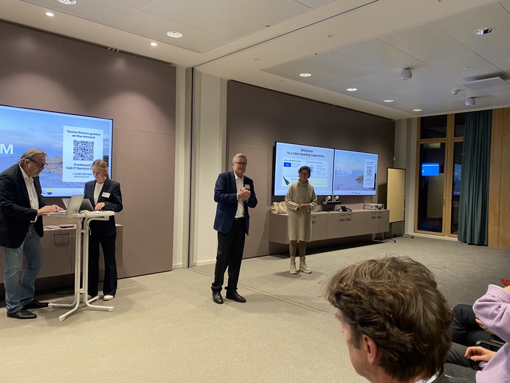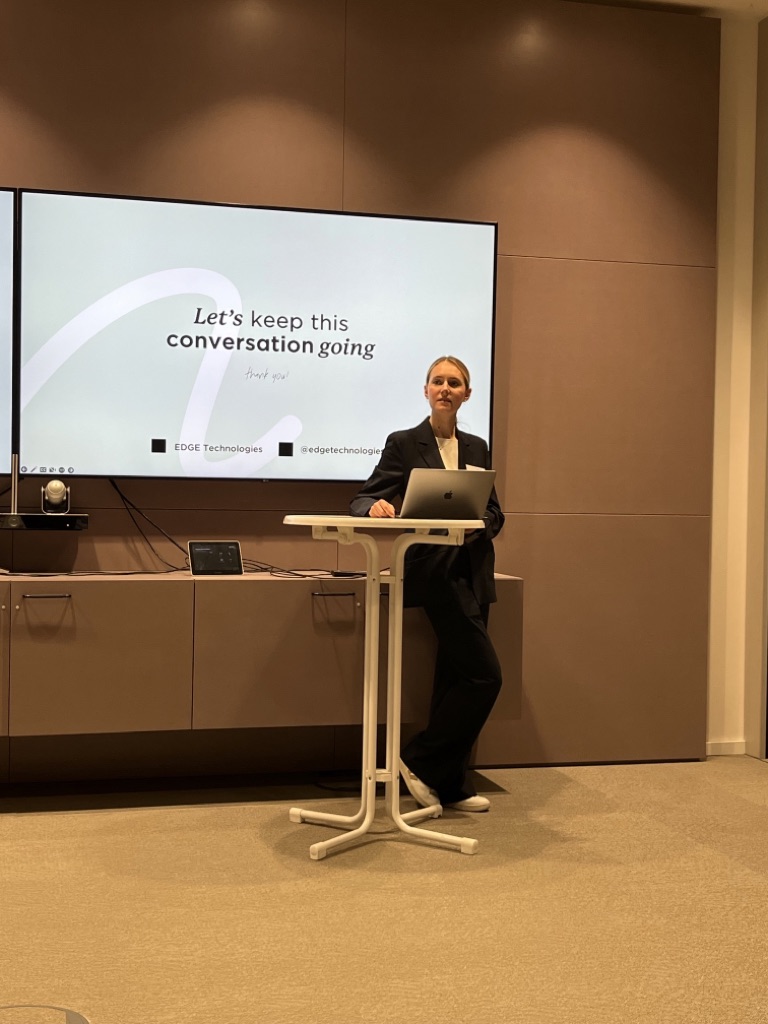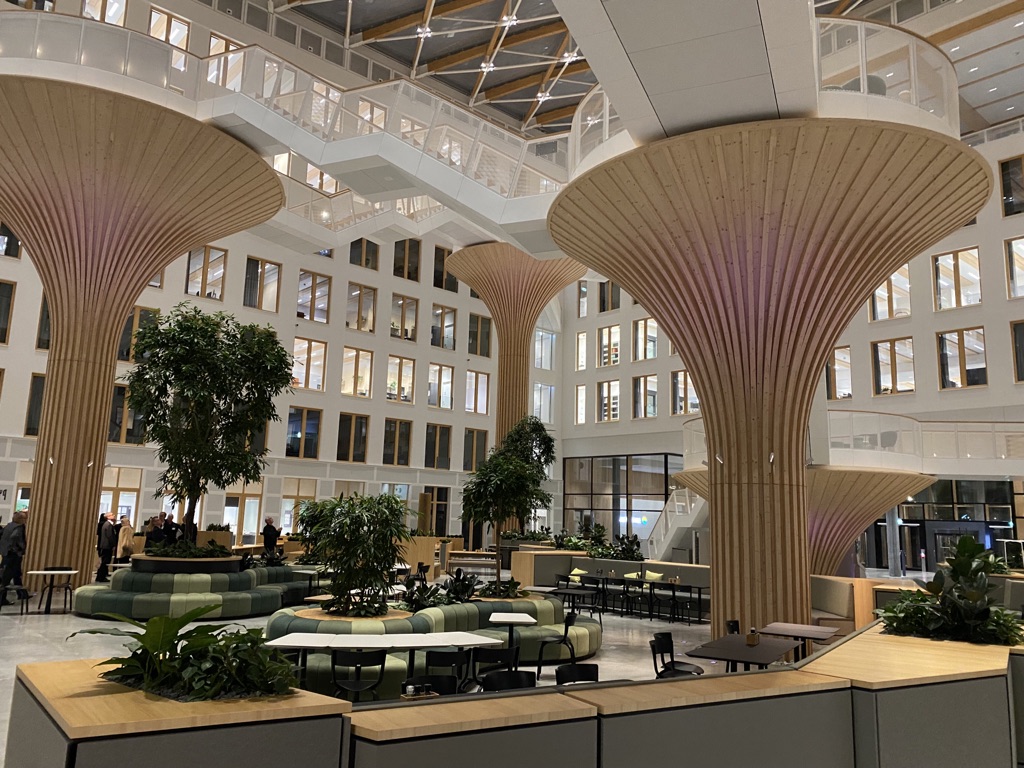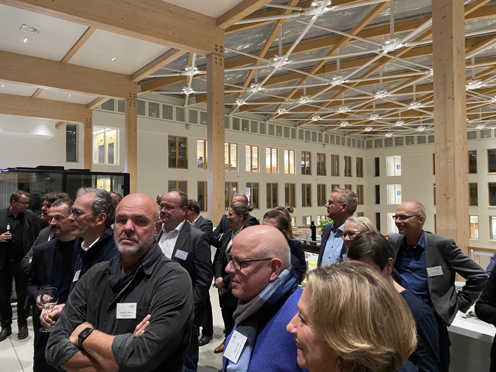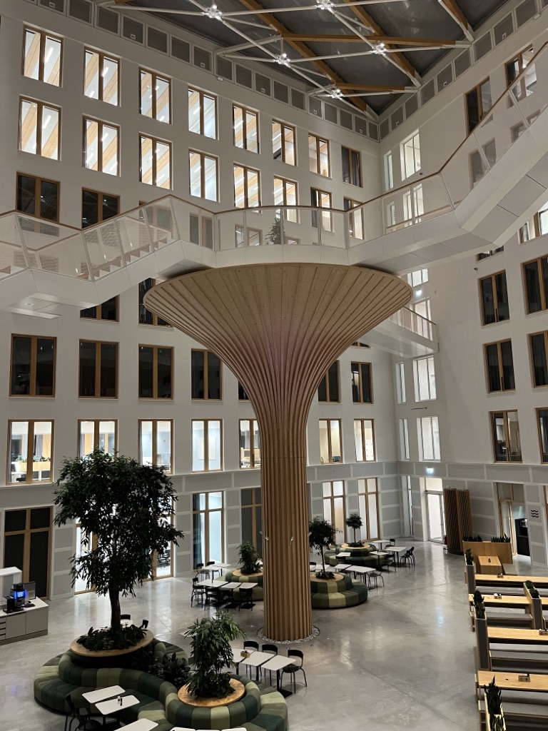 Thema: Führung zwischen Treppenskulptur und Skylounge vom neuen Hausherrn, Herr Helge Rugor, Vice President Real Estate & Facility Management + Hintergrundinformationen zu Nachhaltigkeit und Innovation zum Gebäude, Anastasiya Vitusevych, Developement Manager EDGE